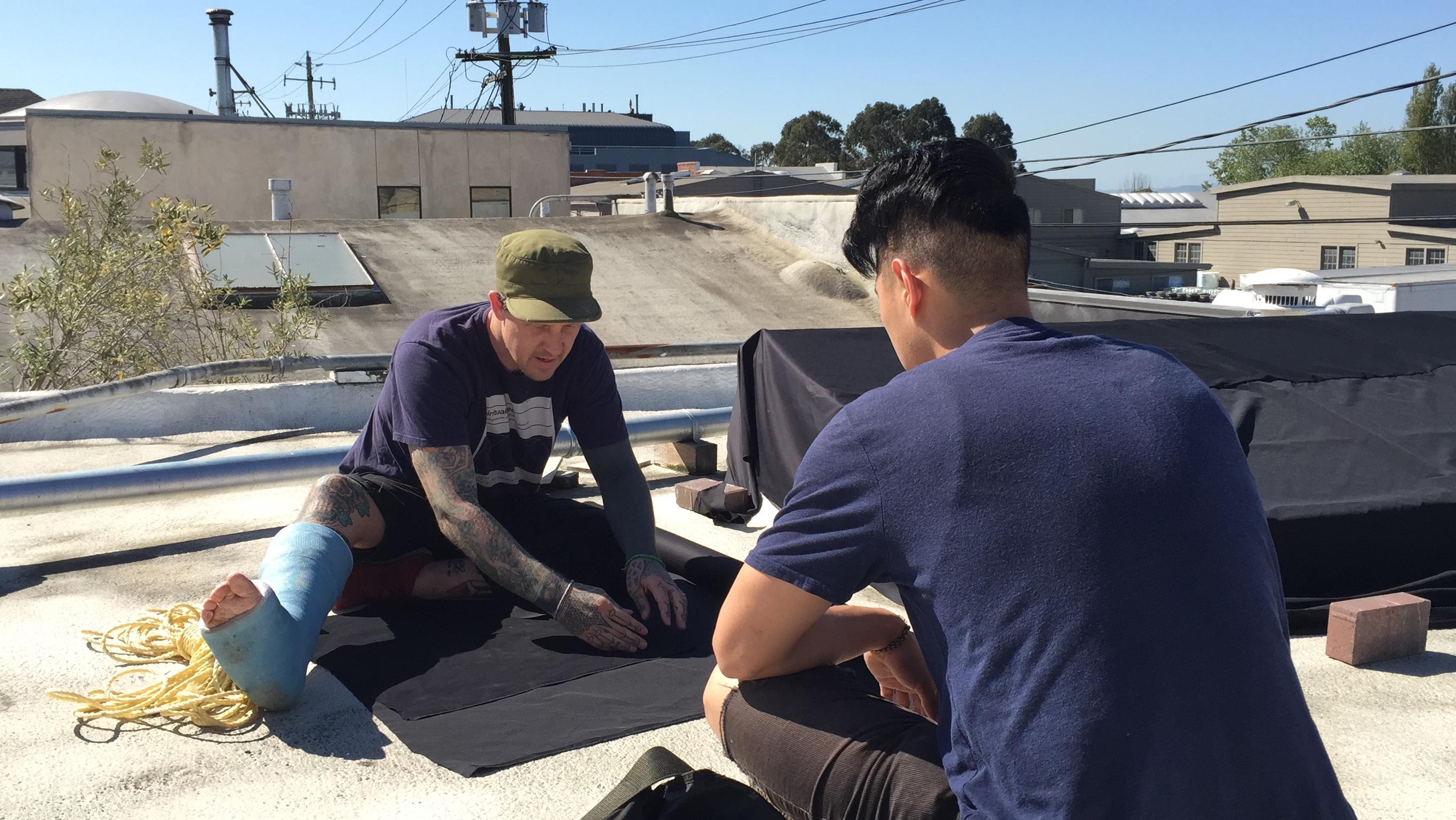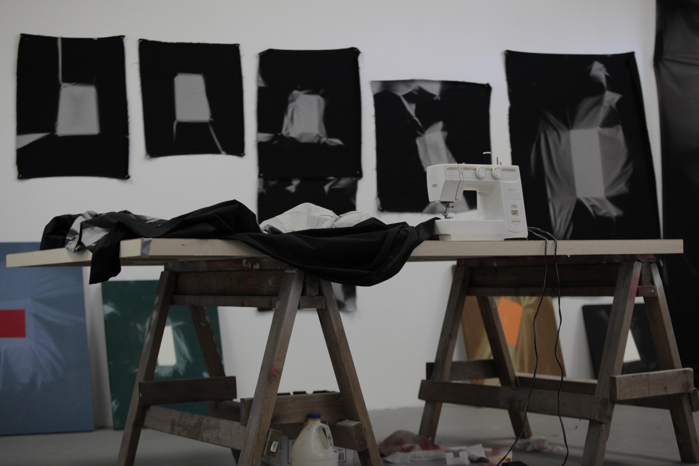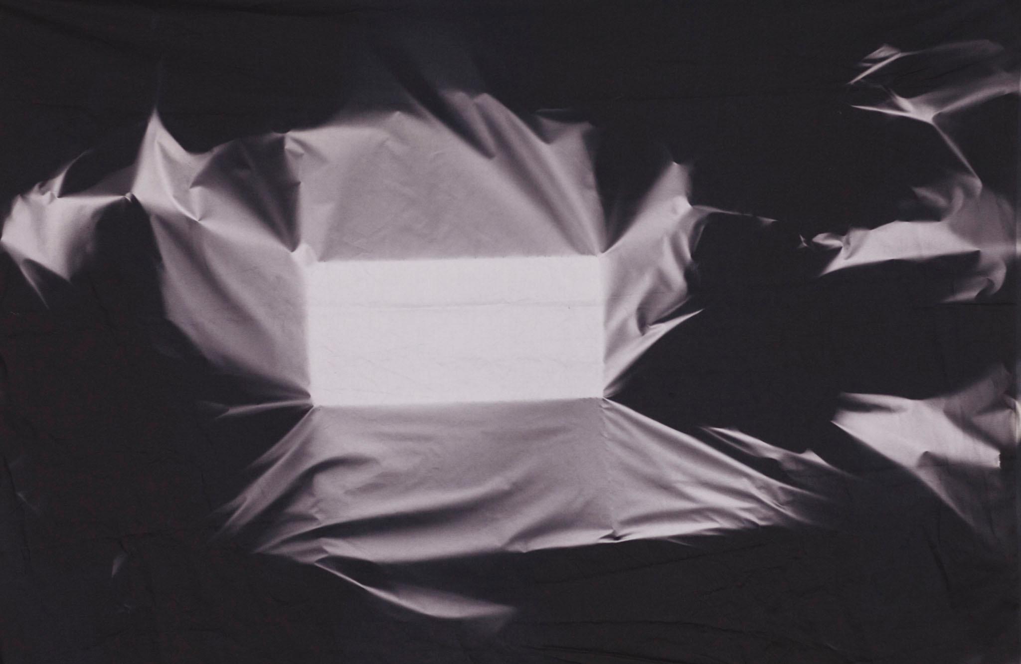 Last April, East Bay artist Chris Duncan rambled around on our rooftop with a broken ankle, wrapping swaths of plain black fabric around its corners and angles. Five months later he returned to remove the result: a series of sun exposures, ghostly in their stretched folds and faded creases. This process, which he stumbled upon serendipitously years ago, is the product of the powerful passage of time and the effortless natural cycles that inform so much of his work.