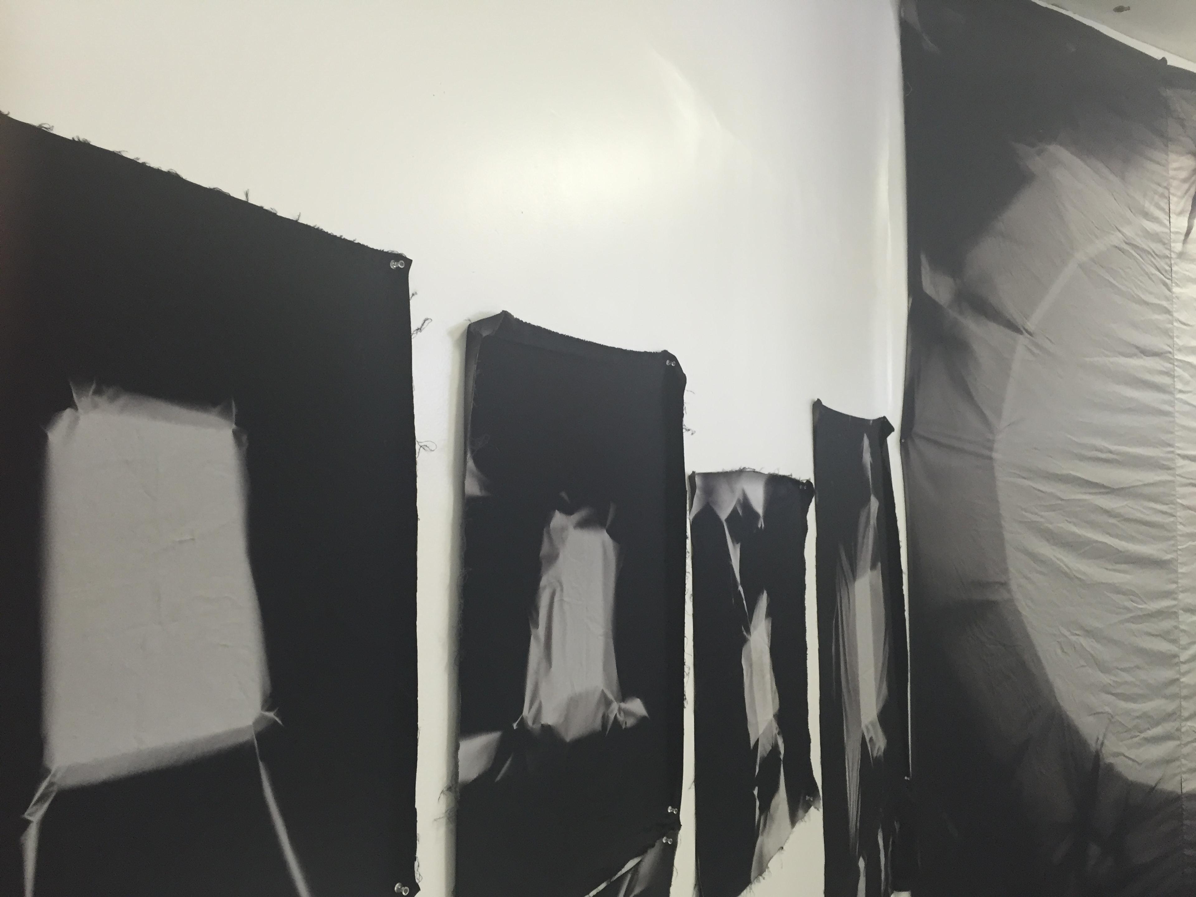 Last April, East Bay artist Chris Duncan rambled around on our rooftop with a broken ankle, wrapping swaths of plain black fabric around its corners and angles. Five months later he returned to remove the result: a series of sun exposures, ghostly in their stretched folds and faded creases. This process, which he stumbled upon serendipitously years ago, is the product of the powerful passage of time and the effortless natural cycles that inform so much of his work.