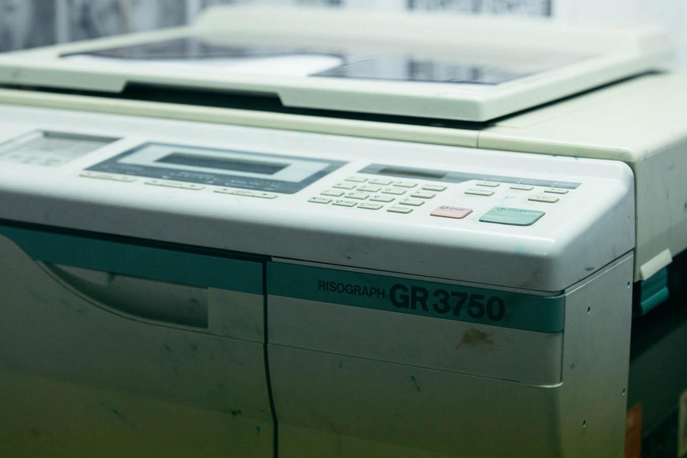 Colpa Press uses a risograph as their main method of printing, but Luca also employs other devices that bridge the gap between analog and digital. Part of his studio space is reminiscent of every 90s basement den, complete with a secondhand couch and stacks of B-movie VHS tapes. Luca has rigged up a color video printer to the TV so he can create physical screenshots from the videos. He may take several of these out-of-context moments from different films and manipulate the images or combine them with other objects in a work. “I’m interested in the multiple lives of objects...and how they can live together in a new narrative.”