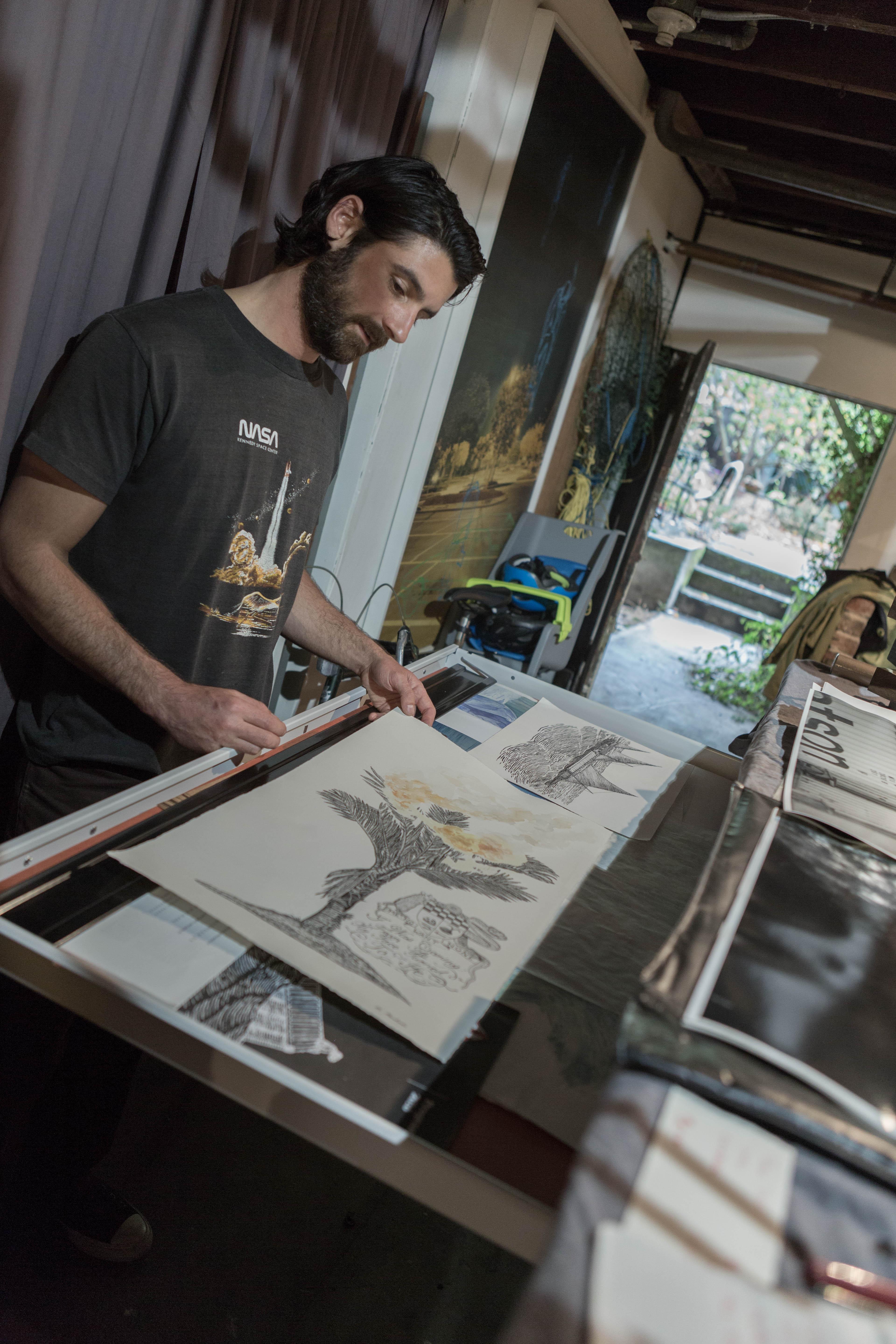Martin’s mixed media—photographs and paintings that resemble etchings—borrow tropes from those early artist documents, and when you look closely at his subjects, you can see the echo of passed time. “We think of the world as a very different place now,” Machado says, "but I think history repeats itself."
