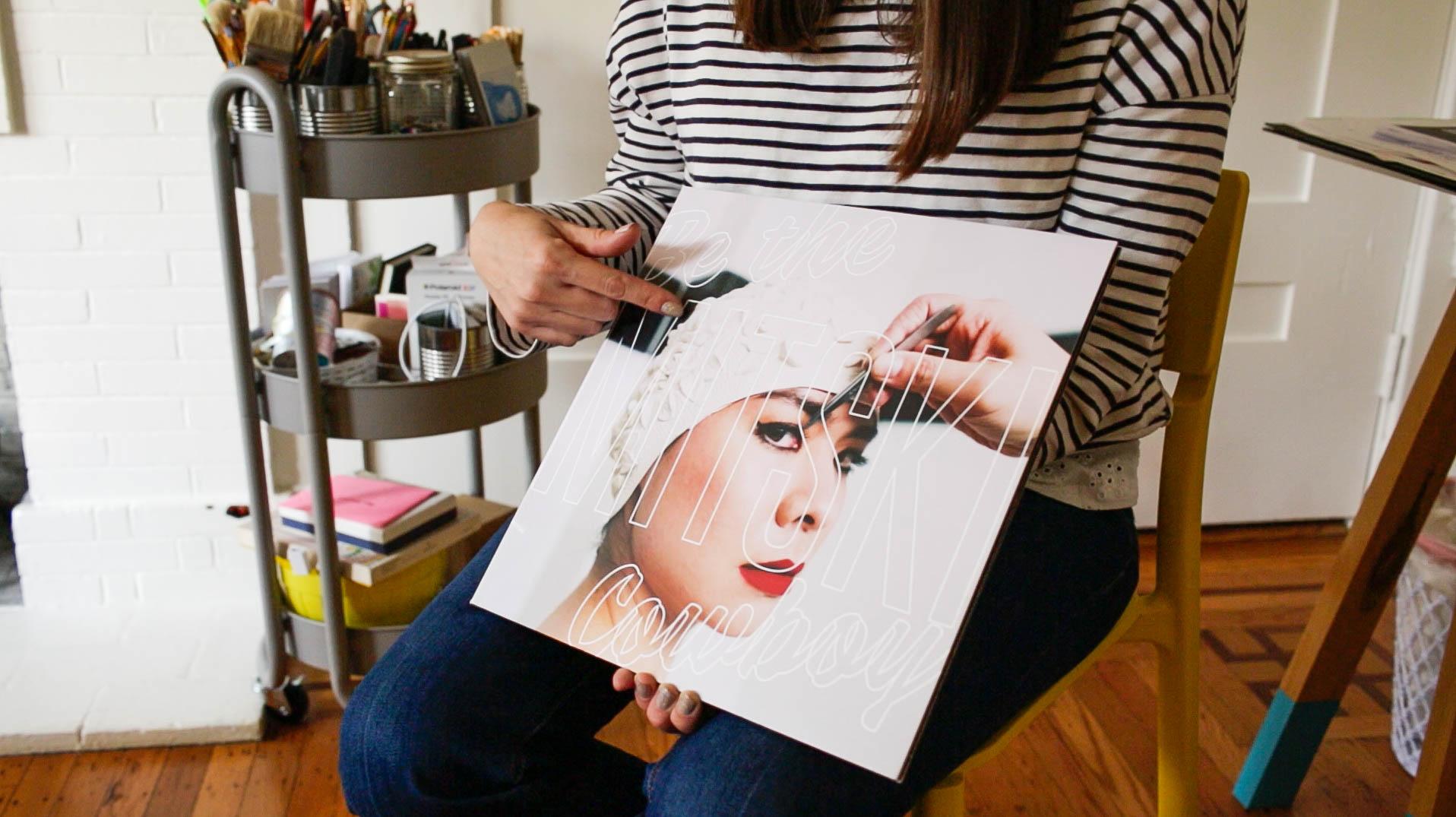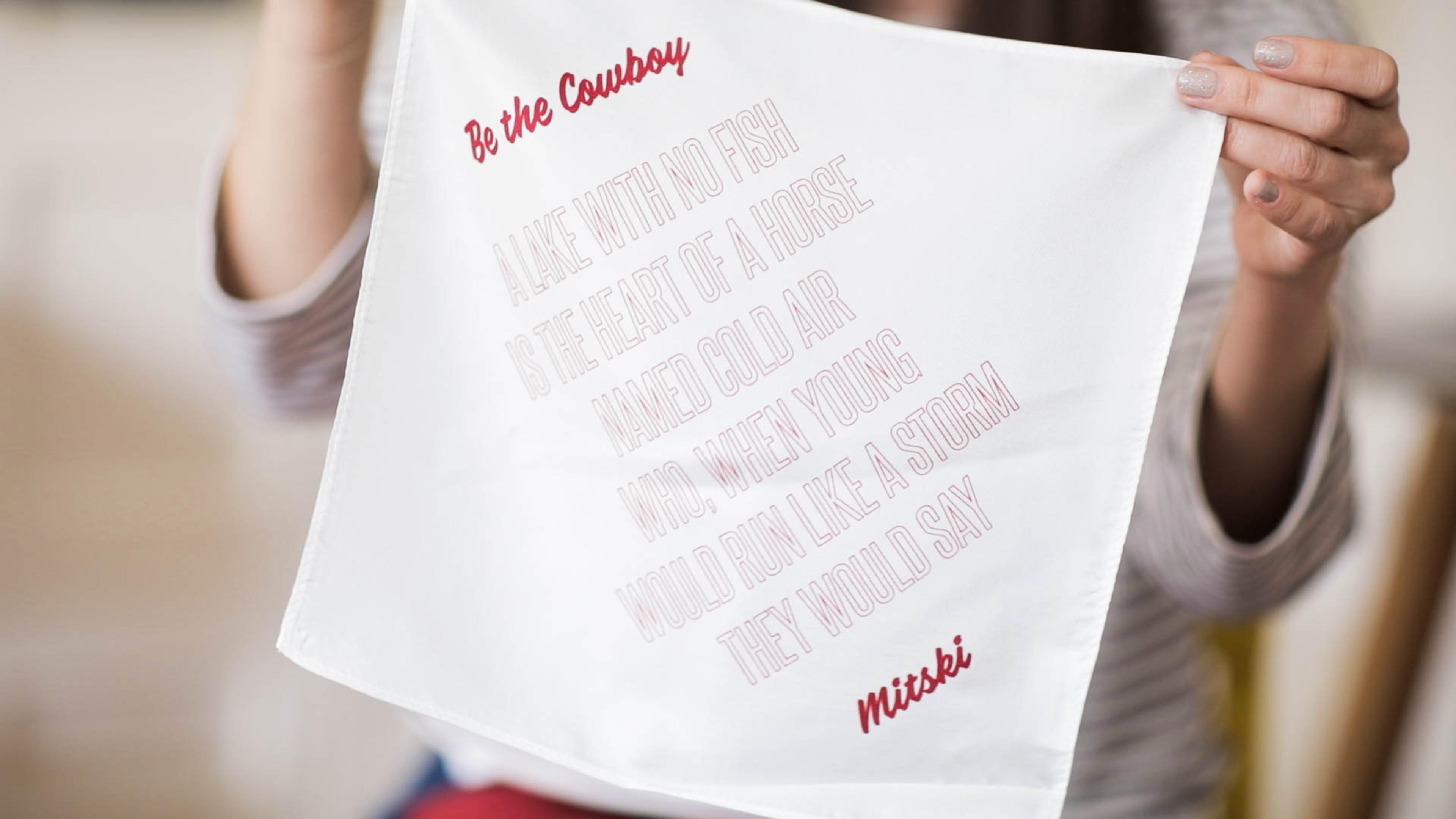 “I aim to make work that is (somehow) good for people.” In her commissioned work, Banas designed a poster for artist Selby Cole’s remote happening “No Phone Day” which encouraged participants to consider their relationship to their smartphone, and designed the album art for Mitski’s “Be The Cowboy” record down to the coke bottle green color of the vinyl and special edition 100% silk handkerchief printed with lyrics. Banas explains that when she has the privilege of choosing, the work she takes on directly correlates with who she believes should be seen, heard; people that should be paid attention to.