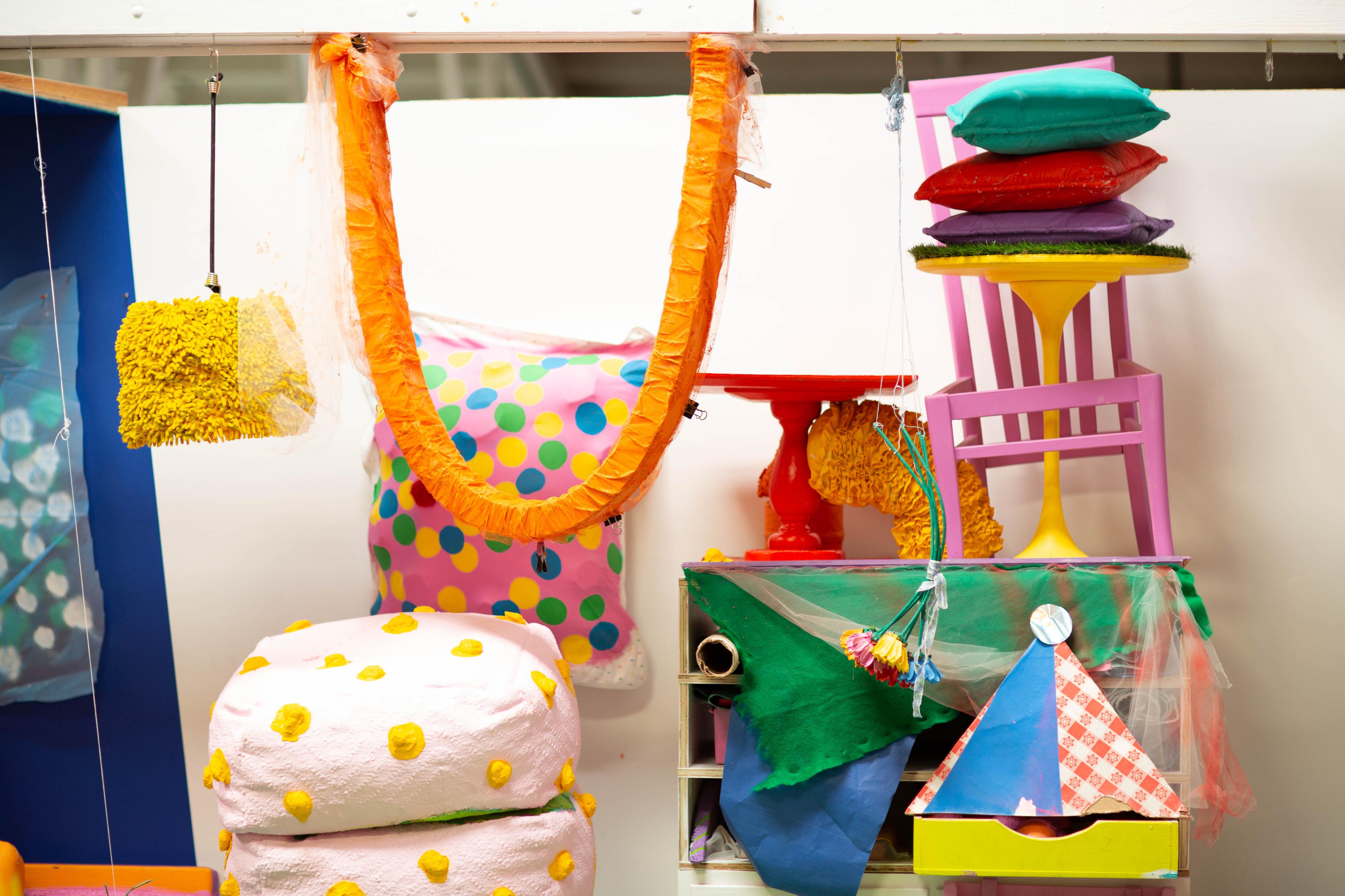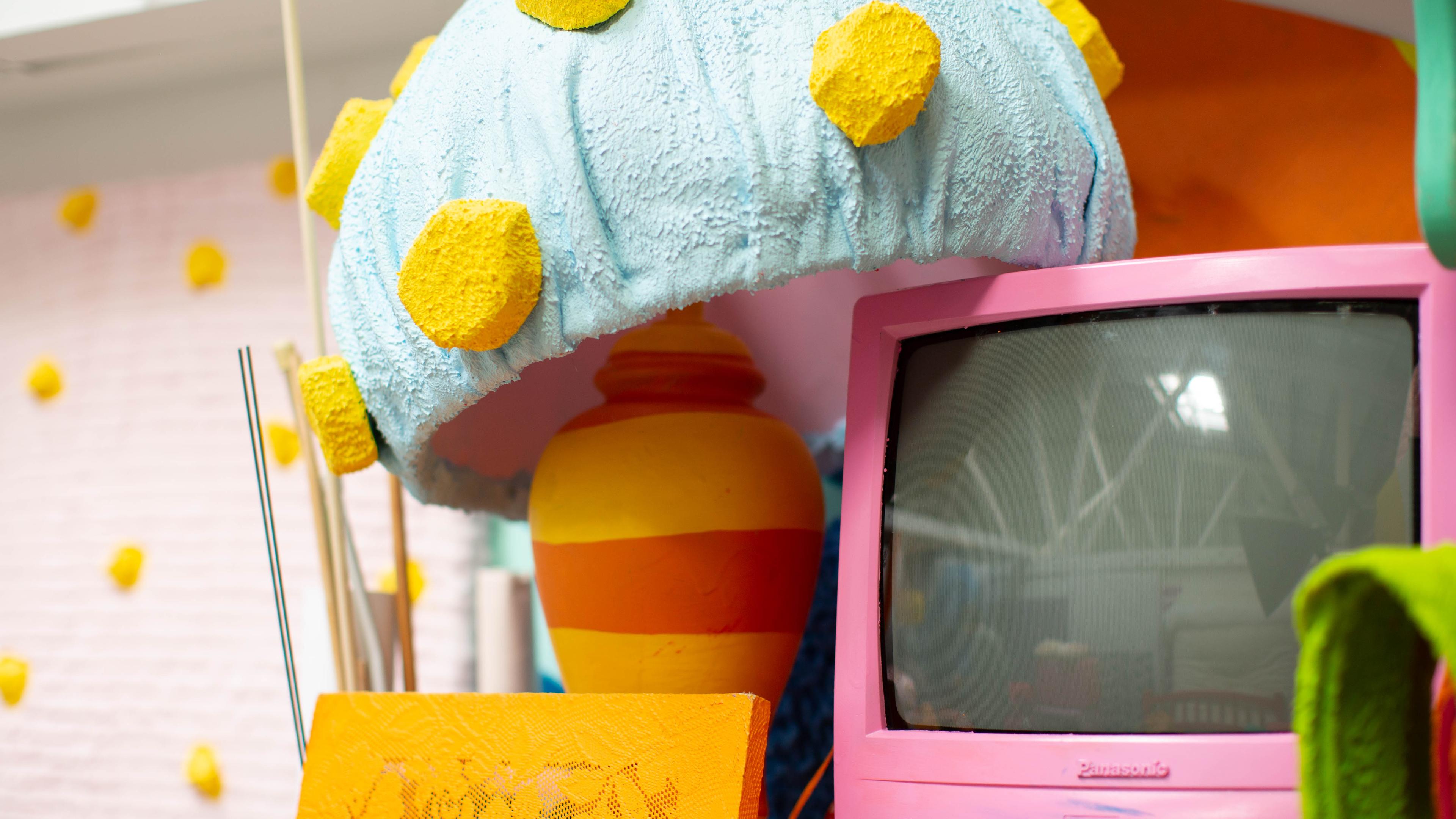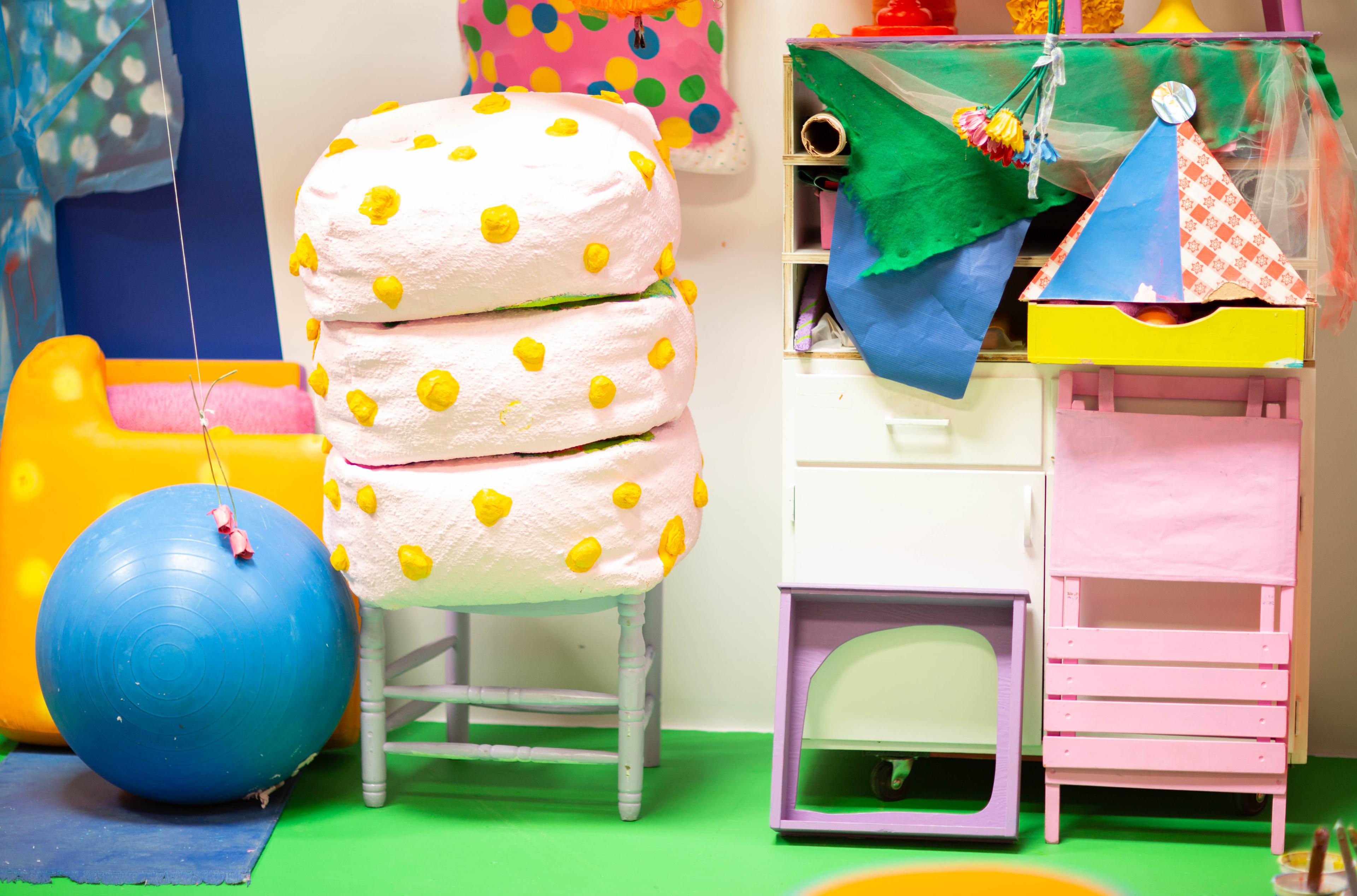 For Limited Edition, Ramos has transformed JMS into a riot of vibrant colors and objects that spill onto each wall and onto the floor of the gallery itself.